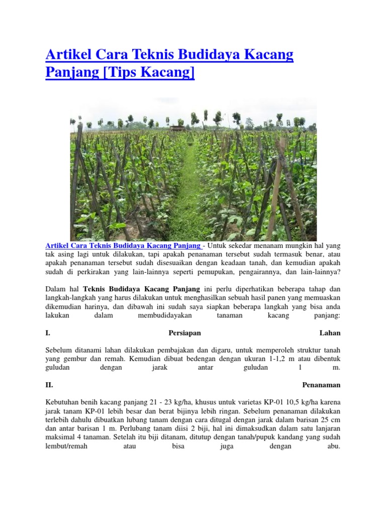 Artikel Cara Teknis Budidaya Kacang Panjang