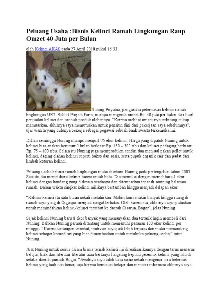 Analisa Usaha Ternak Kelinci Info Peluang Usaha