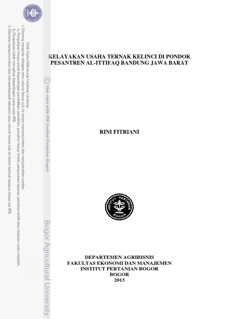 Fitriani Kelayakan Usaha Ternak Kelinci Di Pondok Pdf